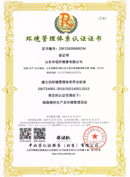 环境管理体系认证证书
